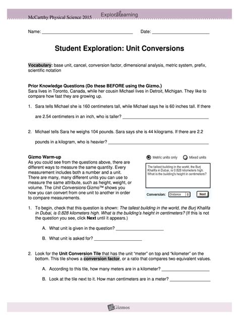 Free Reading Student Exploration Unit Conversions Gizmo Answers Kindle Deals PDF